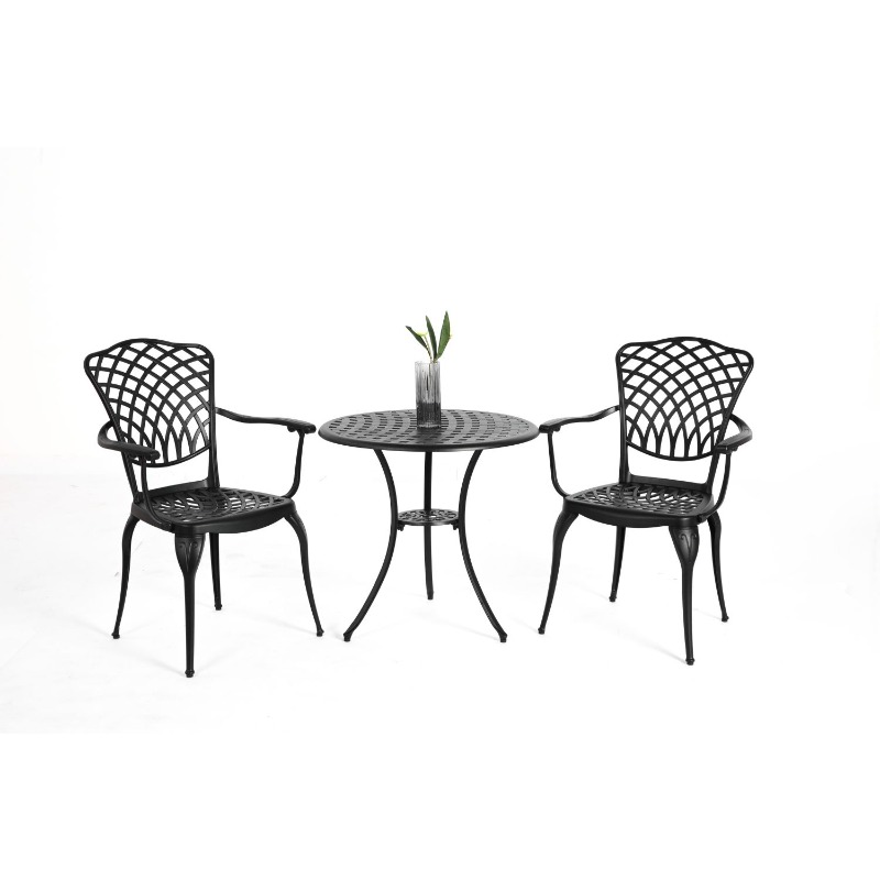 3pcs Patio Bistro Set Cast Aluminum Bistro Table And Chairs Set of 2 with Umbrella Hole All Weather Metal Bistro Table Set Outdoor Patio Furniture Set for Garden Black Quality Assurance